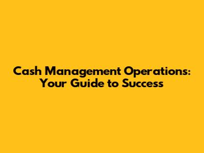 Cash Management Operations: Your Guide To Success