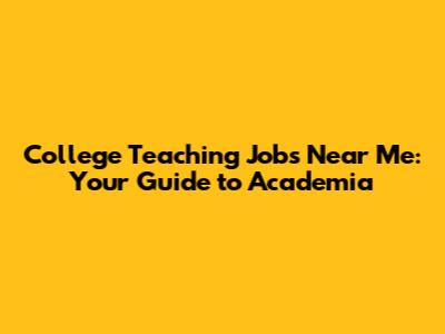 College Teaching Jobs Near Me: Your Guide To Academia