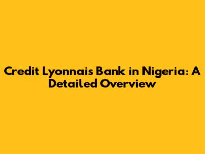 Credit Lyonnais Bank In Nigeria: A Detailed Overview