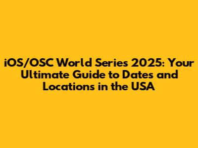 IOS/OSC World Series 2025: Dates & Location Guide