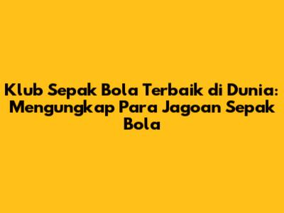 Klub Sepak Bola Terbaik Di Dunia: Siapa Yang Pantas?