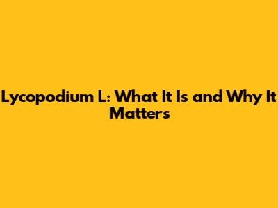 Lycopodium L: What It Is And Why It Matters