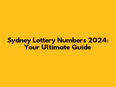 Sydney Lottery Numbers 2024: A Guide