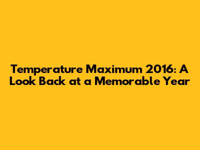 Temperature Maximum 2016: A Look Back At A Memorable Year